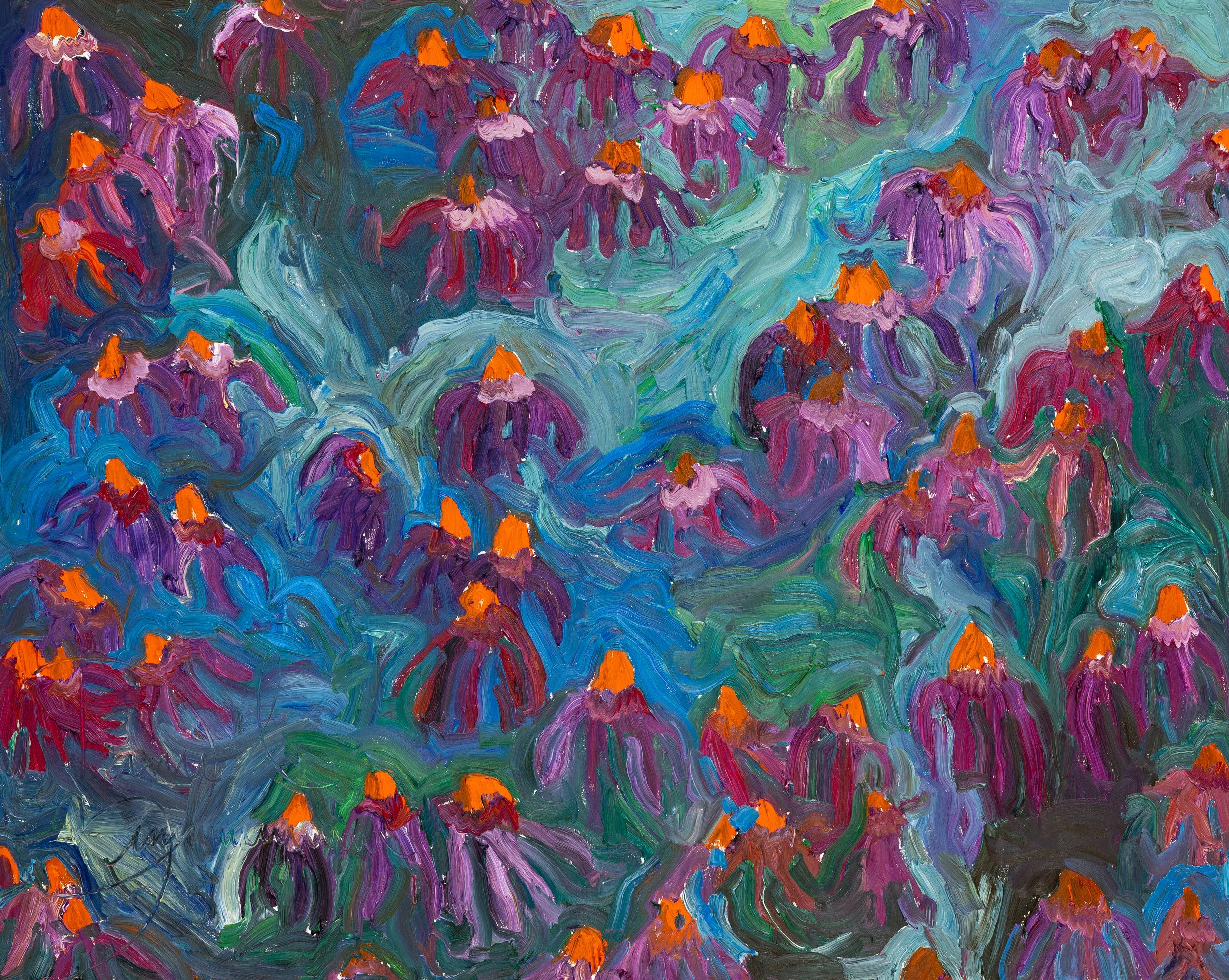 This fall showcase preserves the warmth and abundance of summer, inviting viewers to wander through an environment that feels both cultivated and untamed. Zimmerman’s summer-painted gardens, parrots, and topiaries collectively celebrate a season of growth long after the sun has shifted.